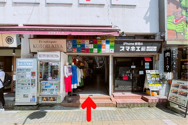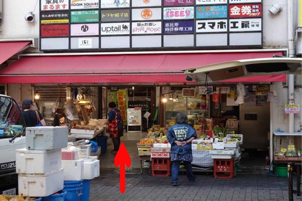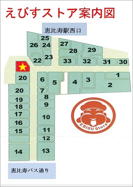 | ストア入口ご案内 | 恵比寿西口・魚キヨと玉川青果のあいだ | 駒沢通り入口・コトブキヤとスマホ | 裏通り・バインミー |