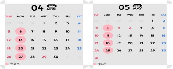 | ●定休日 ※月曜日が祝日の場合は営業致します。翌日の火曜日が定休日となります。 |